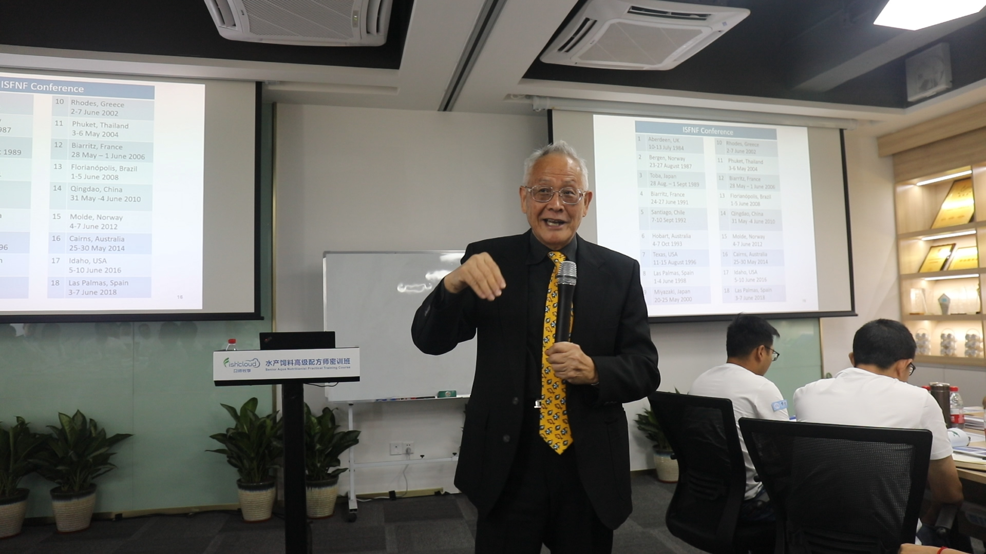 Prof. Shiau Shi-yen of Taiwan Ocean University, is a co-author of Nutrient Requirement of Fish and Shrimp (NRC, 2011), came to Guangzhou and gave lessons for the training course. He prepared two elaborate lessons, which named The Basic Nutrition Theory That Aquafeed Nutritionists Must Know and How to Scientifically Design and Implement Aqua Animal Nutrition Experiments. He not only introduced some basic knowledge of fish and shrimp nutrition which was necessary for nutritionists, but also systemically taught the professional requirements for the design and implementation of fish and shrimp nutrition experiments. His lectures let the trainees broaden their horizons, and lay the most professional foundation of becoming excellent nutritionists for them.